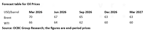 OCBC Group Research maintains its base case for one 25bps fed funds rate cut in 2026 and has pencilled in this expected cut for 1Q26. Thereafter, any additional fed funds rate cuts will probably require inflation to move nearer to Fed’s 2% target.
